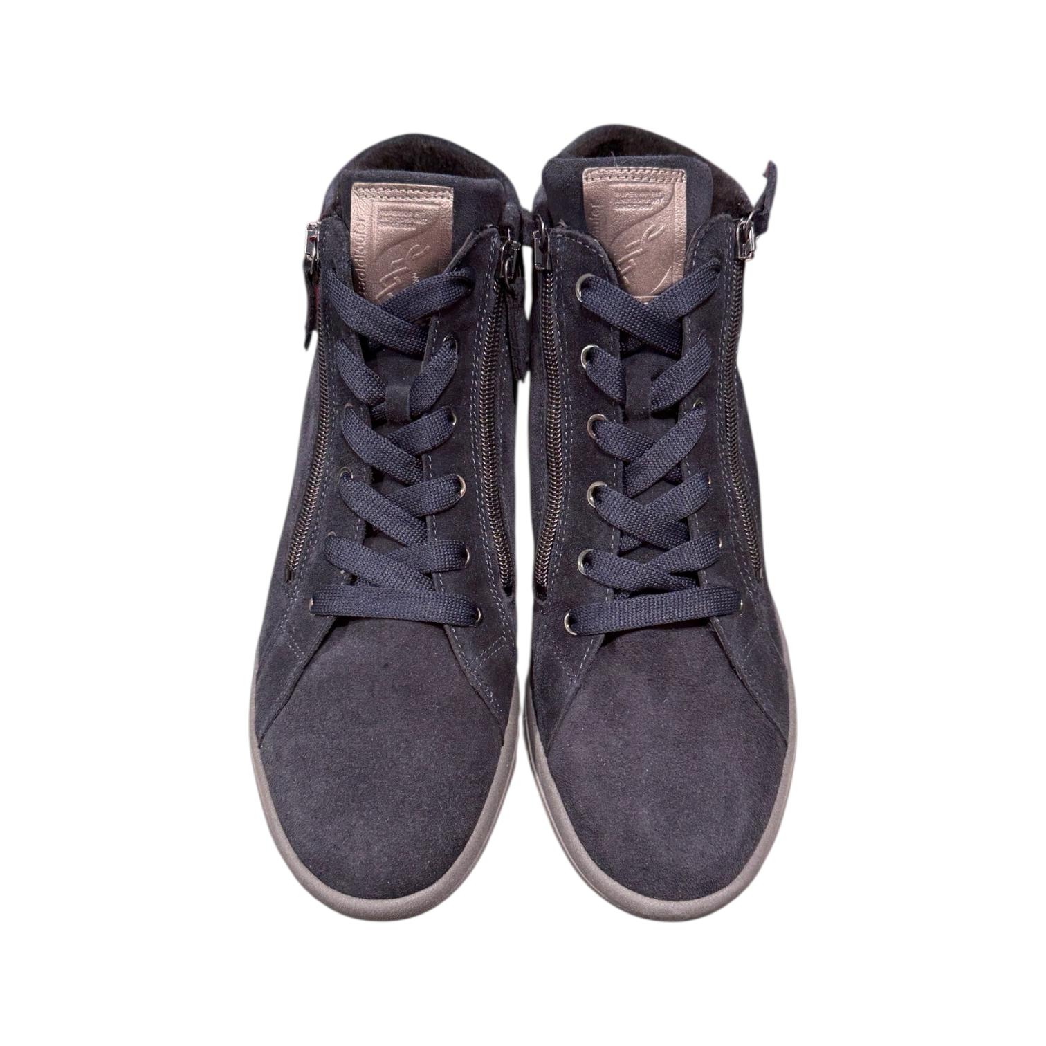 The H-Teresa ankle boot in deep blue perfectly blends refined style with exceptional comfort. Crafted from premium nappa and suede leather, it offers a sleek lace-up design complemented by a side zipper for effortless wear. Featuring a warm lining and a wide H fit, it ensures cozy comfort and generous space. The air-cushioned sole provides outstanding shock absorption and reliable traction, while the removable insole allows personalized support. An elegant yet practical choice for everyday sophistication.