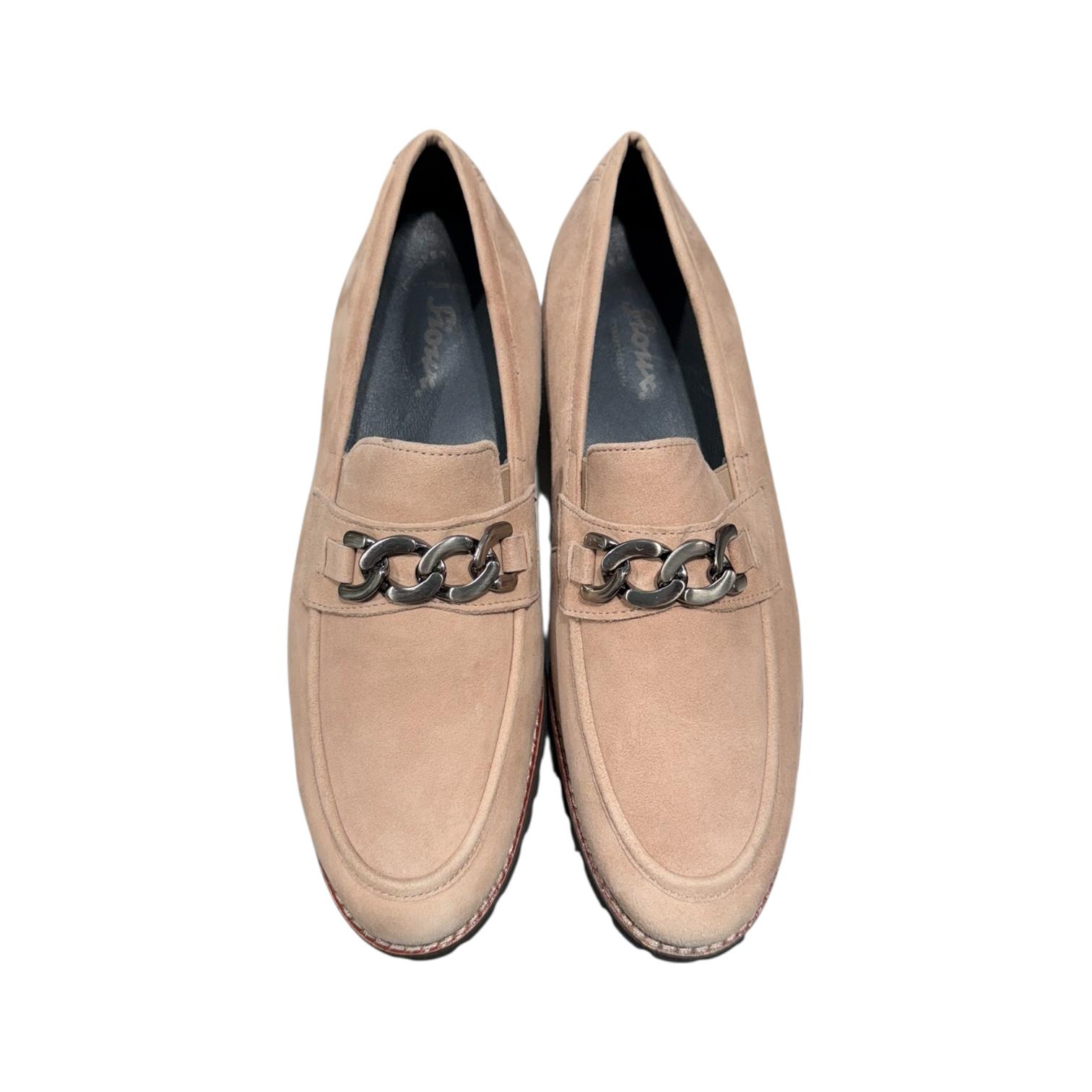 This suede shoe in beige mousse blends timeless elegance with exceptional comfort. Featuring a wide H fit and a soft leather lining, it delivers a refined wearing experience tailored for everyday use. The removable leather insole provides customizable support, while the sturdy synthetic sole ensures dependable traction and stability. Perfectly balancing classic style and practical functionality, this shoe is a sophisticated choice for those who value both comfort and design.